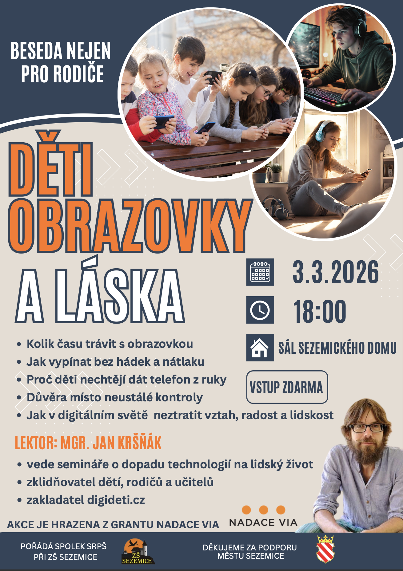 DĚTI, OBRAZOVKY A LÁSKA Beseda nejen pro rodiče